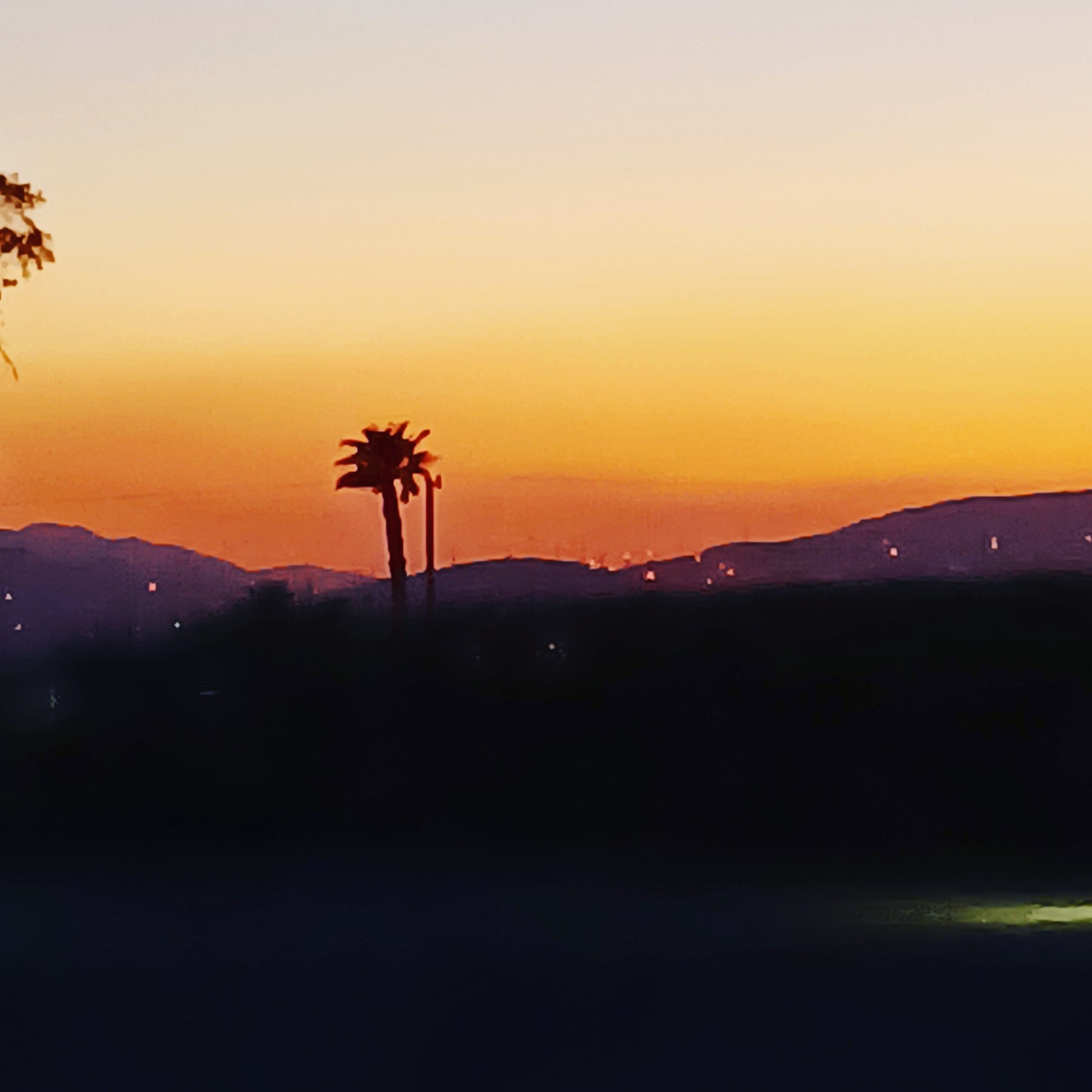 California sunset from Palm Desert California. We stayed at the KOA for a night.